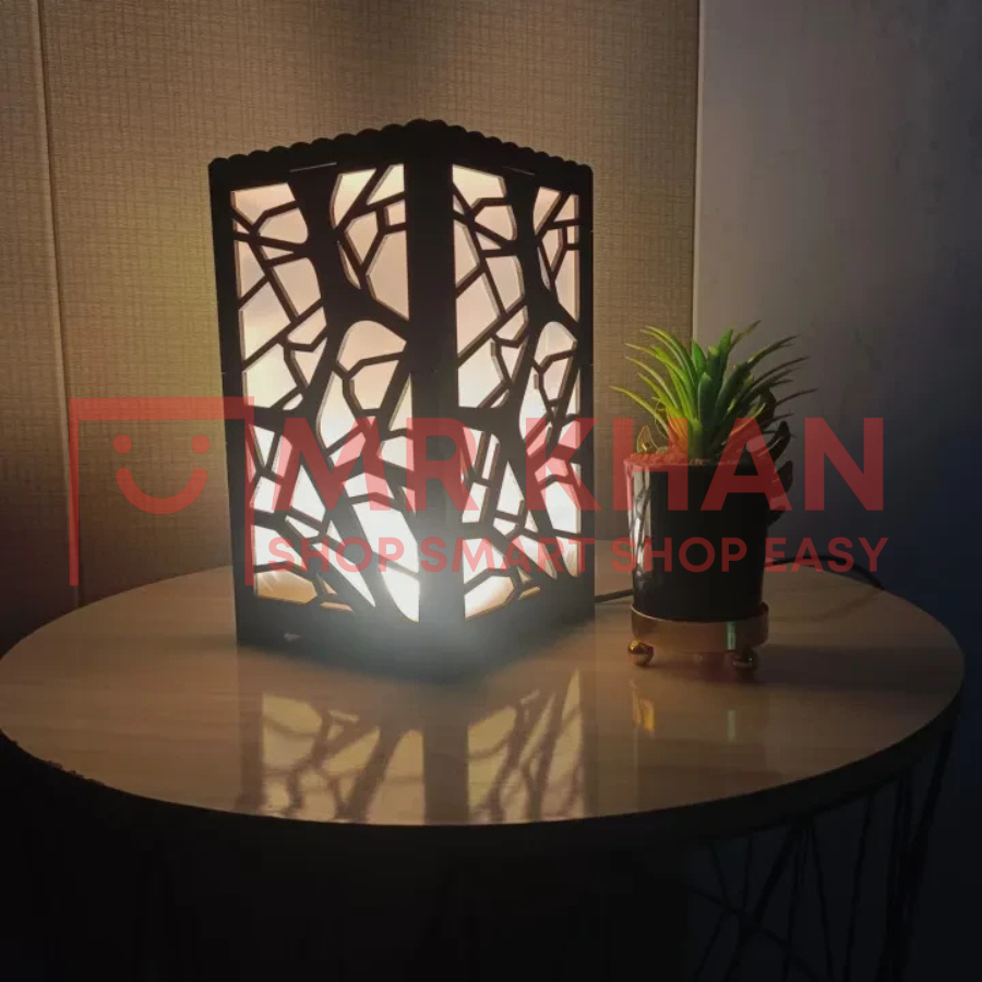 Stylish and elegant wooden lamp, perfect for bedrooms, side tables, and home decor. Creates a warm ambiance with intricate laser-cut designs. Ideal for modern and cozy interiors.