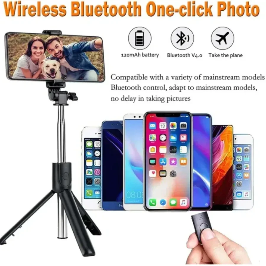 Capture perfect selfies, videos, and vlogs with this versatile 4-in-1 wireless selfie stick tripod! Designed for TikTok, YouTube, photography, and travel, it features adjustable height options (70CM / 110CM / 165CM) and a Bluetooth shutter for hands-free convenience. Available with or without light, this foldable and portable tripod is compatible with all smartphones.