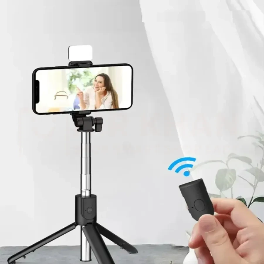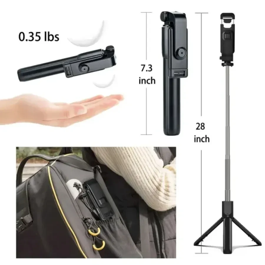 ✔ 4-in-1 Design – Selfie Stick + Tripod + Bluetooth Shutter + Optional Light