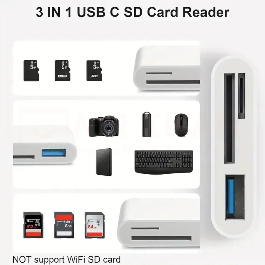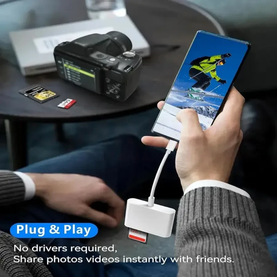 Transfer data effortlessly with this USB-C card reader, supporting SD/TF memory cards at 480Mbps speed. Designed for iPhone 15 Pro, iPad, MacBook, Android, PC, and more, it’s hot-swappable and requires no battery or drivers.
