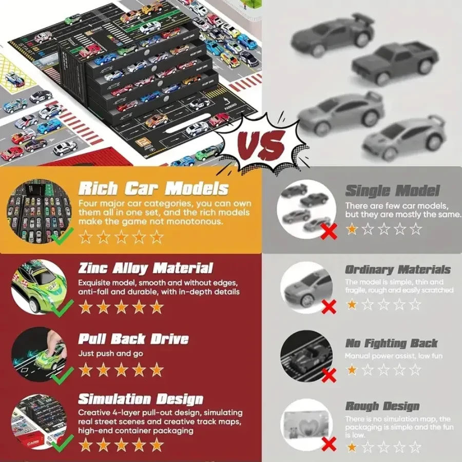 ✔ 48 Mini Cars – A collection of diverse iron alloy vehicles for endless fun.