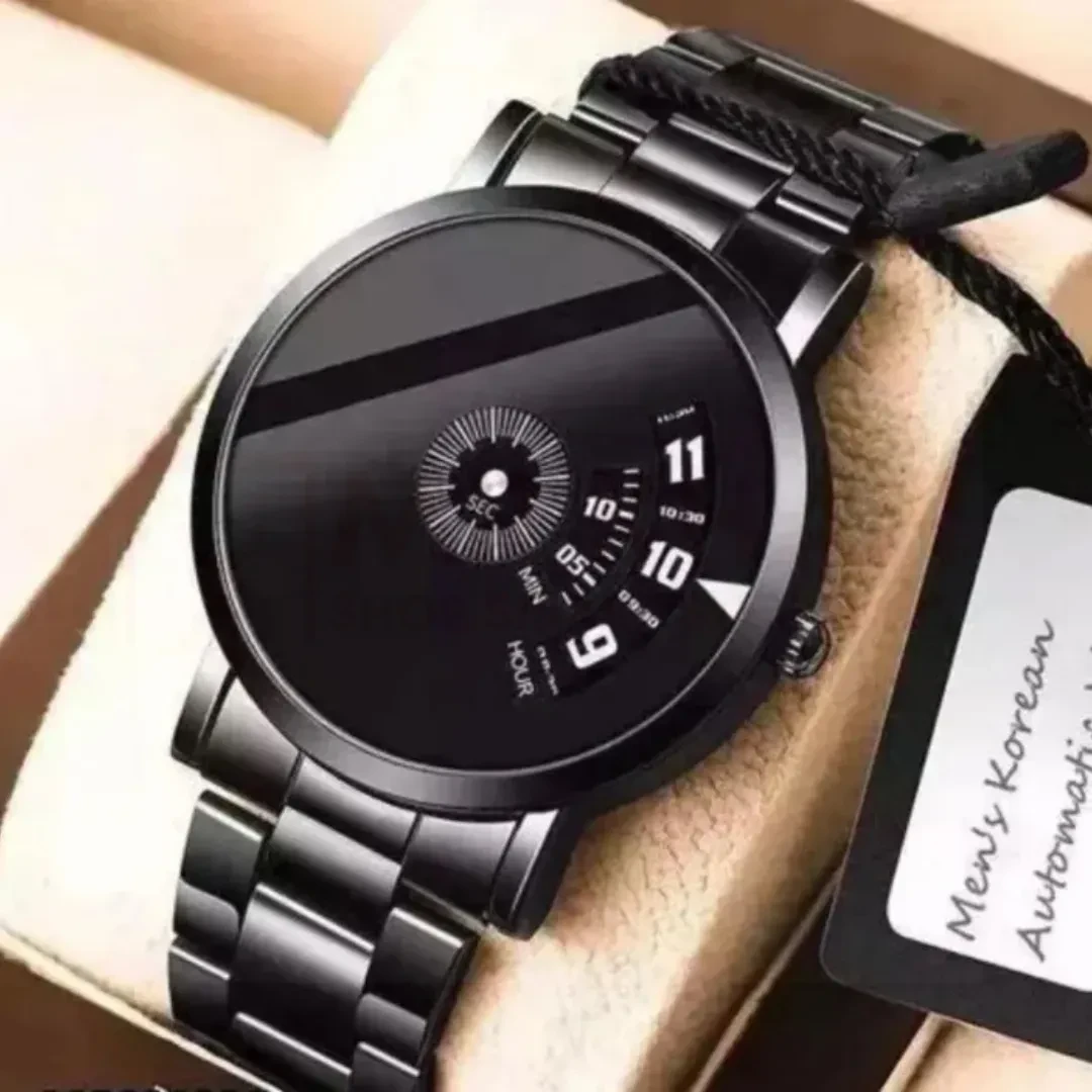 This sleek and fashionable black stainless steel watch is perfect for men and boys who love a modern look. Designed for casual and formal wear, it adds a touch of elegance to any outfit.