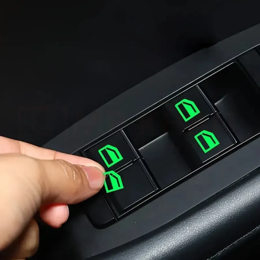 Upgrade your car’s interior with these glow-in-the-dark fluorescent stickers, designed for window control panel buttons. Made from durable PET material, these decals provide enhanced visibility at night while adding a stylish touch.