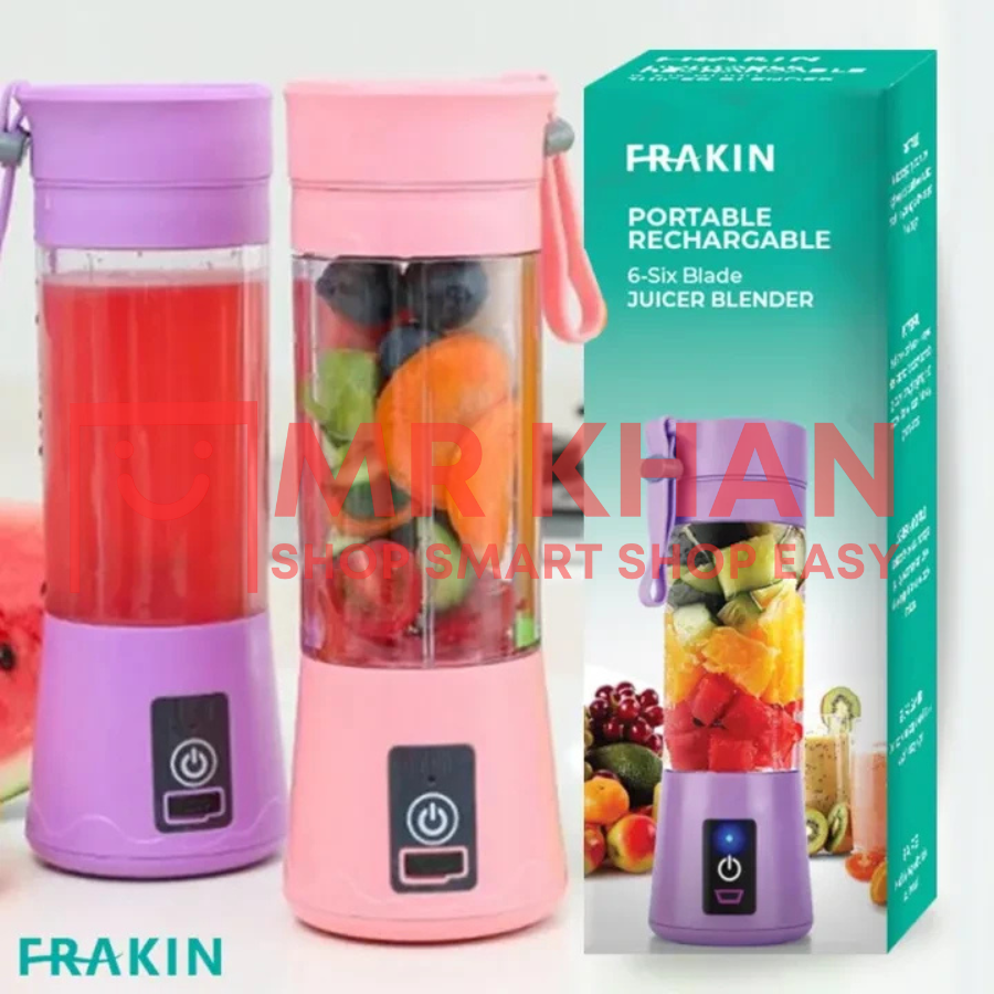 Powerful 6-blade design for smooth blending. Portable 380ml cup, perfect for fresh juices and smoothies on the go. USB rechargeable, food-grade material, and easy to use with a double-click start.