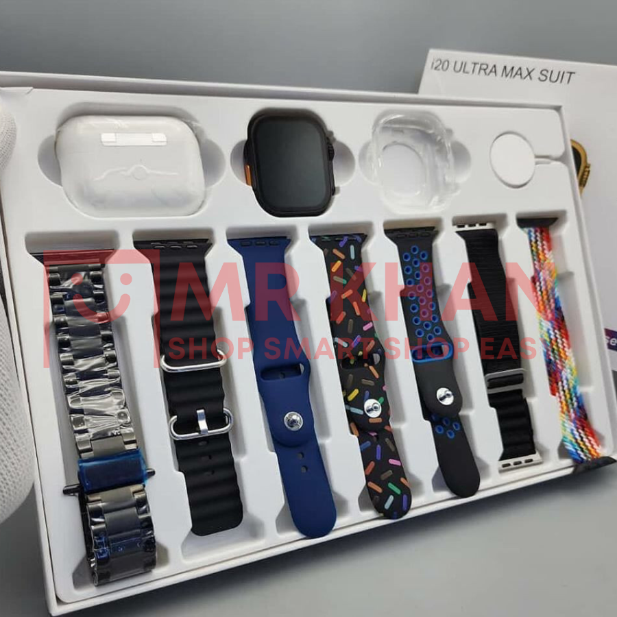 A premium smartwatch with a 2.3-inch large display and 7 interchangeable straps for a stylish look. Comes with built-in earbuds, multi-sport modes, waterproof design, sleep tracking, call function, and heartbeat monitoring. Perfect for boys, girls, men, and women!