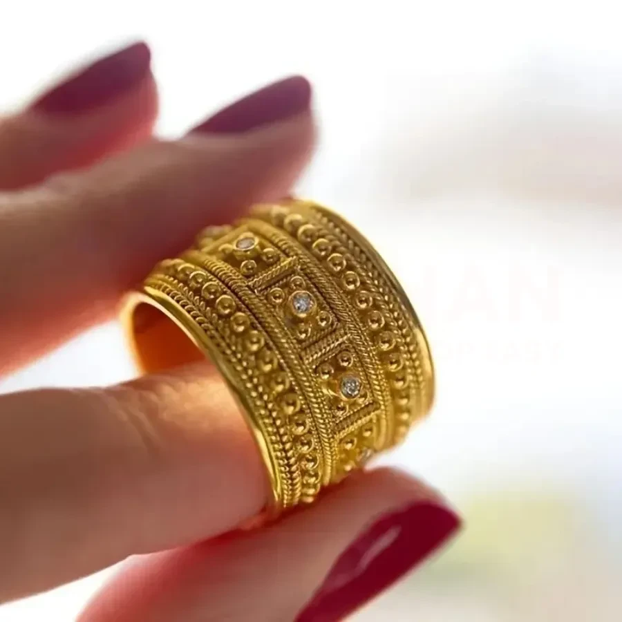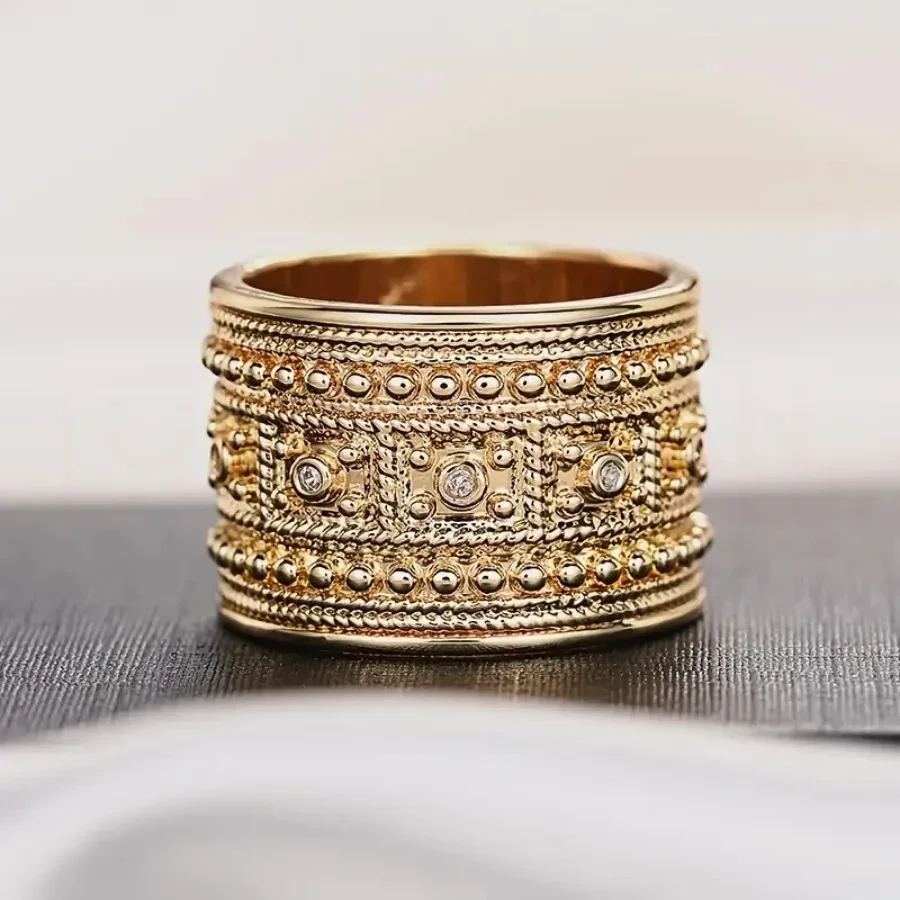 This chic wide-band ring, crafted from high-quality copper with a sparkling synthetic zirconia stone (April birthstone), is perfect for a bold punk-inspired look. Ideal for vacations, parties, or daily wear, it adds a touch of elegance to any outfit!
