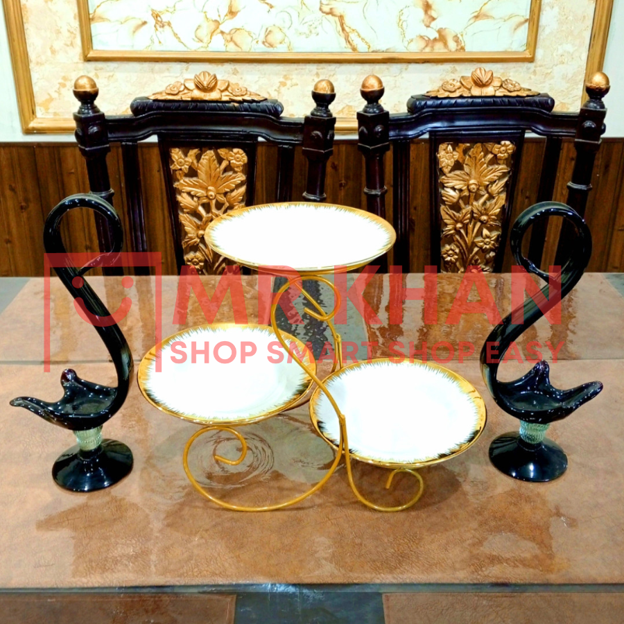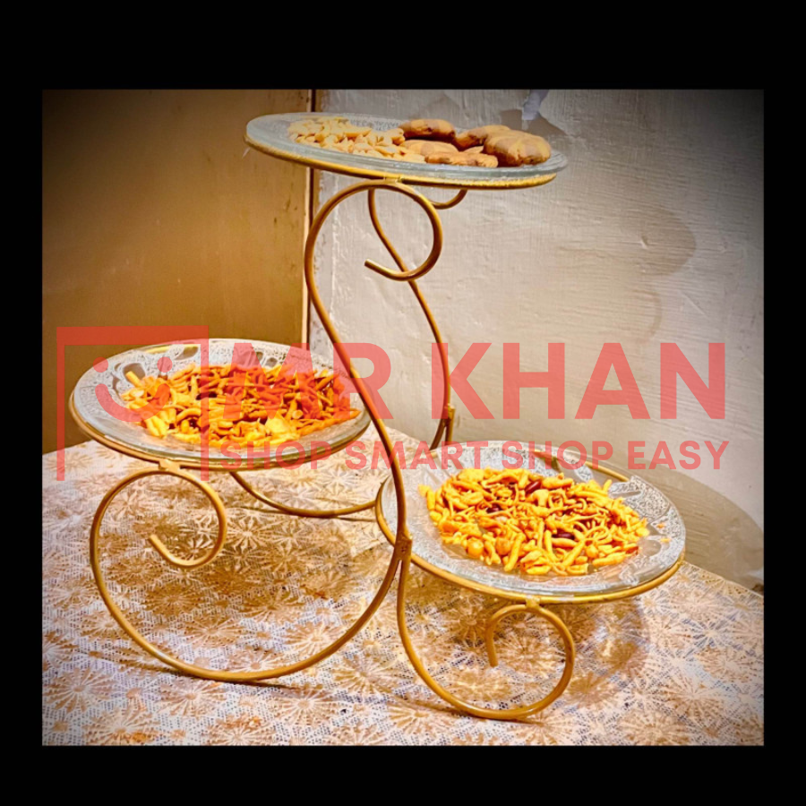 Elegant and durable storage rack for serving cakes, snacks, and dried fruits. Perfect for home décor, kitchen organization, and center table display. Heavy material with powder coating for a premium look!