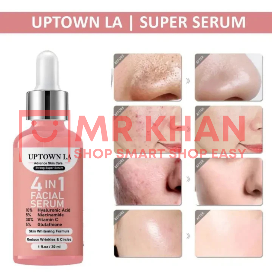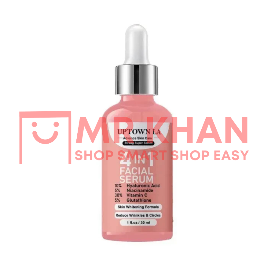 Get radiant, healthy skin with UPTOWN LA’s 4-in-1 Super Skin Glowing Serum! Infused with 5% Niacinamide, 30% Vitamin C, 10% Vitamin E, and Hyaluronic Acid, this powerful formula helps brighten, hydrate, and reduce dark spots while promoting a youthful glow. Perfect for all skin types, it nourishes and revitalizes your skin for a fresh, radiant look every day!