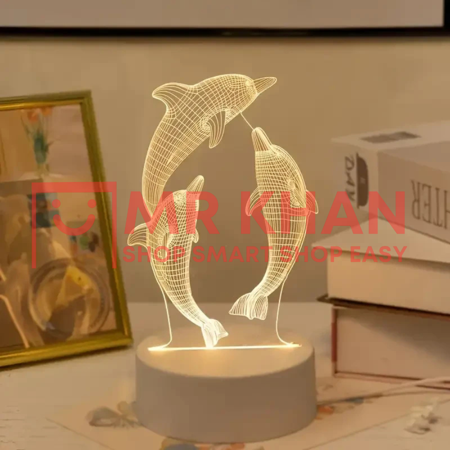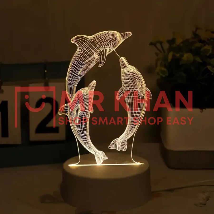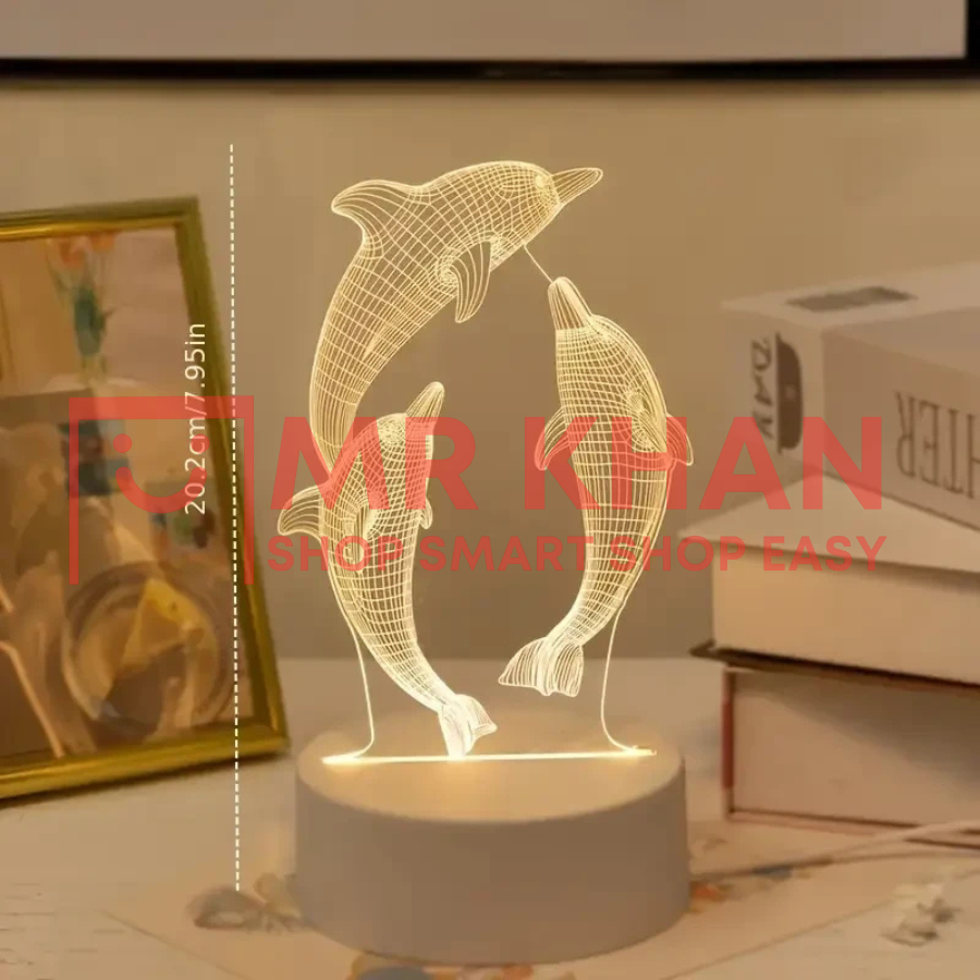 USB-Powered 3D Illusion LED Dolphin Table LampA stunning home decor night light featuring a 3D dolphin design. USB-powered, no batteries required—ideal for gifting or creating a calming atmosphere.