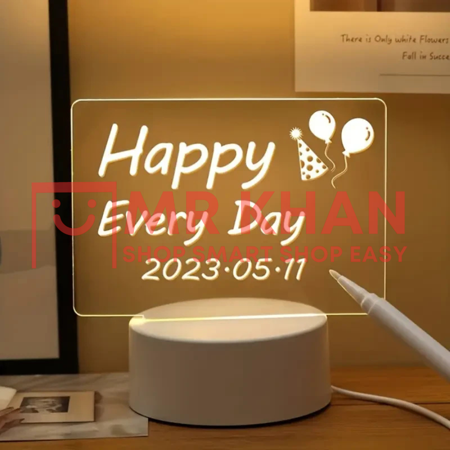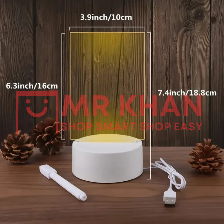 A 3D writing doodle desk lamp with an erasable pen for creative notes and reminders. Features a smart white base, included cord, and a decorative tabletop design. Perfect for memo reminders, home, and office décor.