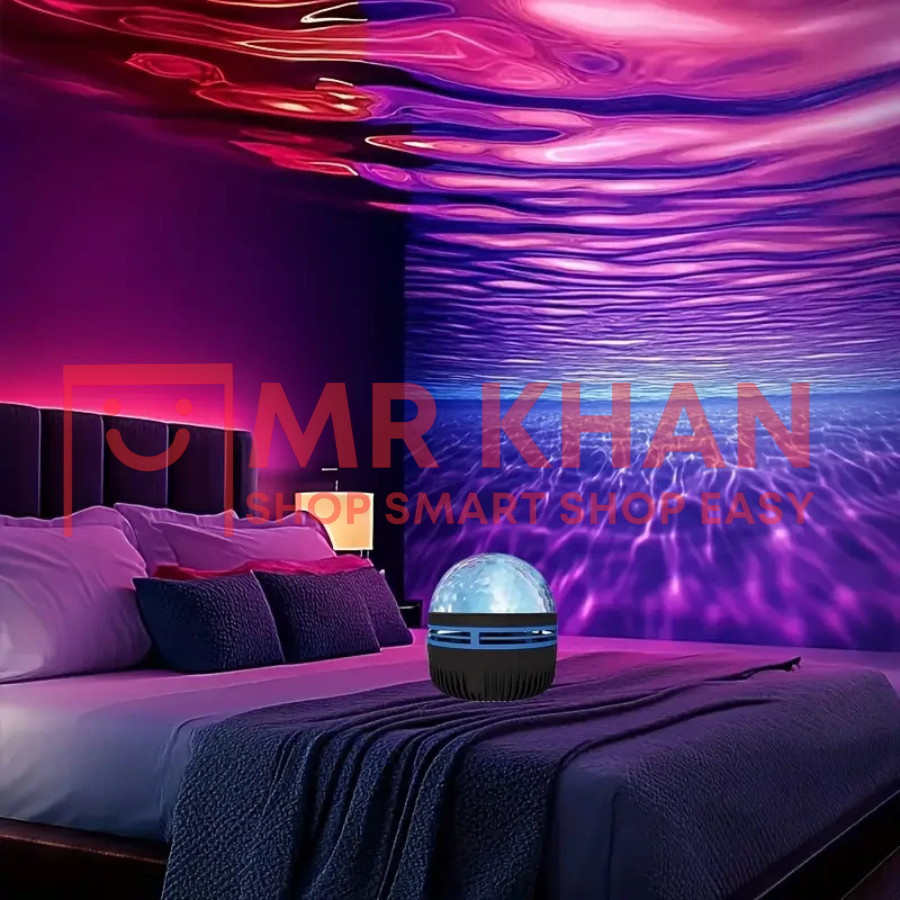 USB-Powered Water Ripple Effect Projector – RGB LED galaxy projector with 7 color patterns, dimmable multi-color lighting, and remote control. No battery required, perfect for bedrooms, home theaters, room décor, holiday gifts, weddings, and camping. Creates a mesmerizing water ripple effect for a relaxing ambiance.
